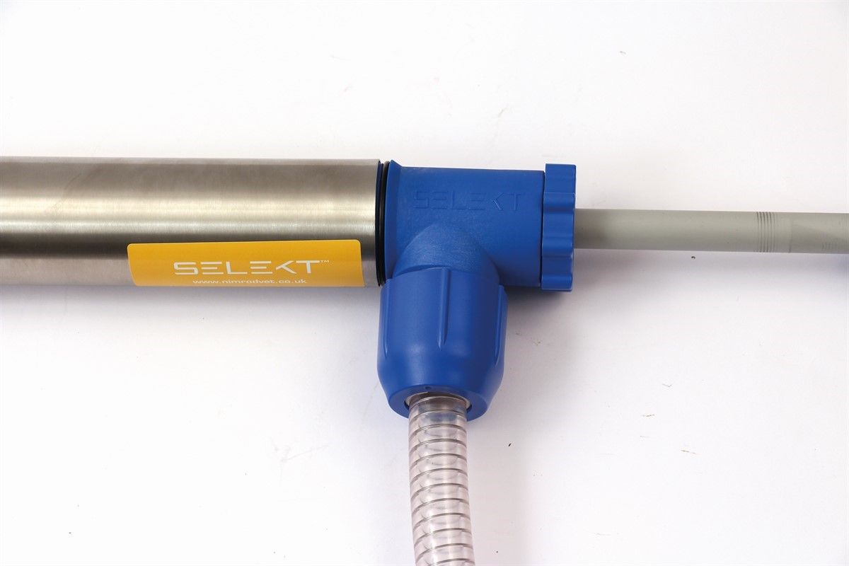 Continuez à introduire la sonde dans le tube buccal jusqu’à ce qu’il reste entre 1m et 1.5 m de sonde en dehors de l’animal